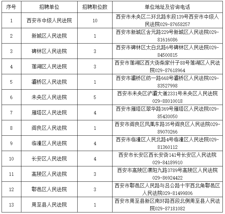 西安法院2023年度面向社會(huì)公開(kāi)招聘聘用制書記員職位表